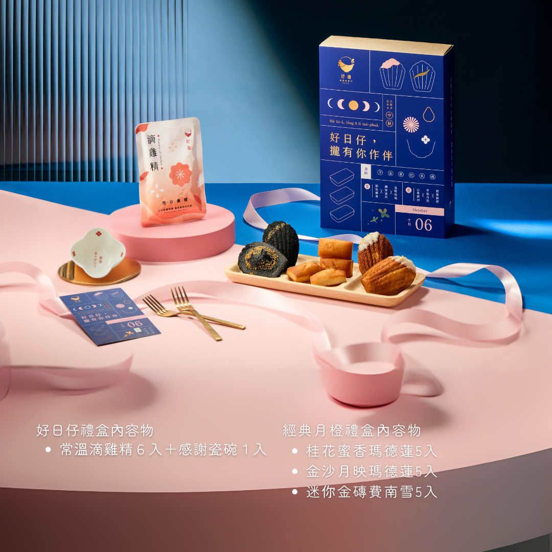 好日仔,攏有你作伴滋養不只來自滴雞精,還有日子裡的甜,延續台式日曆的文化底蘊,用現代插畫與燙金點綴出既有溫度又有質感的節日氛圍,最有「台味」的甜點,搭配溫潤的養生滴雞精,不只補身,更補心,把團圓的祝福、台灣的味道,放進禮盒裡。
