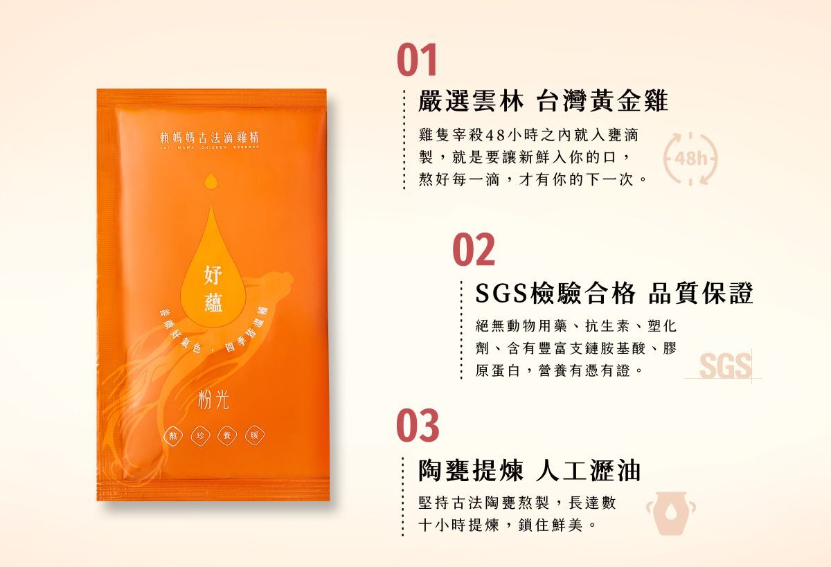 .嚴選台灣黃金雞,48小時內入甕滴製,保有最新鮮的口感