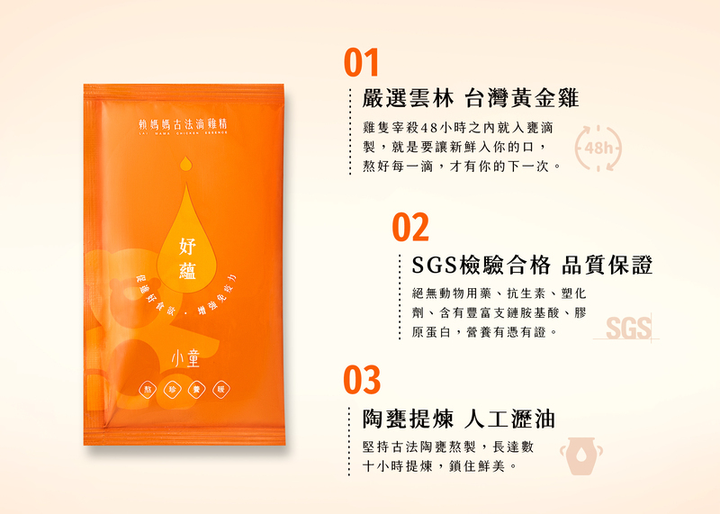 .嚴選台灣黃金雞,48小時內入甕滴製,保有最新鮮的口感